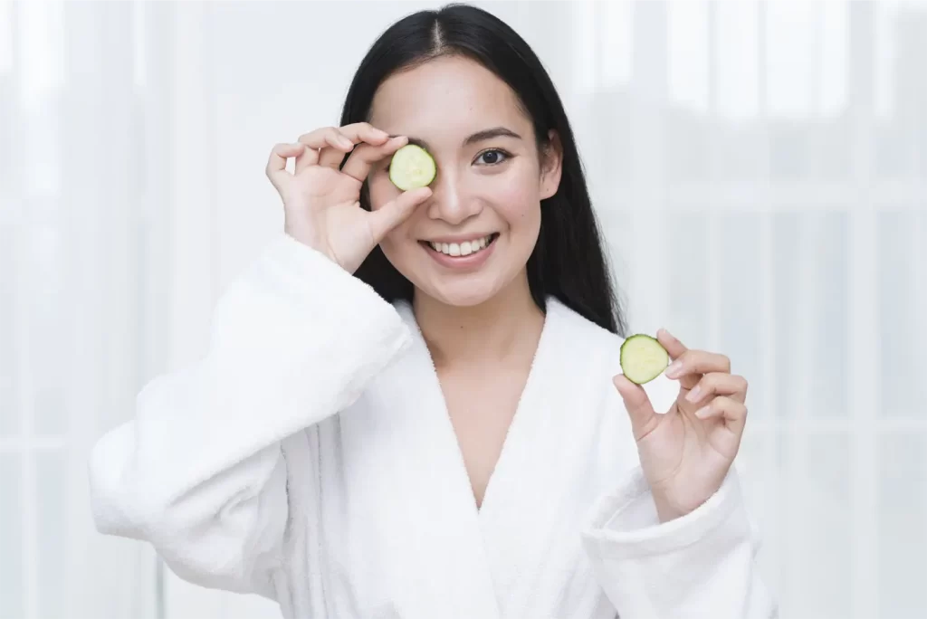 Apply a cooling eye compress to reduce inflammation and puffiness around the eyes. Soak a clean cloth in cold rose water or cucumber juice, and place it over your closed eyes for 10-15 minutes. The cooling properties of these ingredients help soothe the under-eye area and promote circulation.